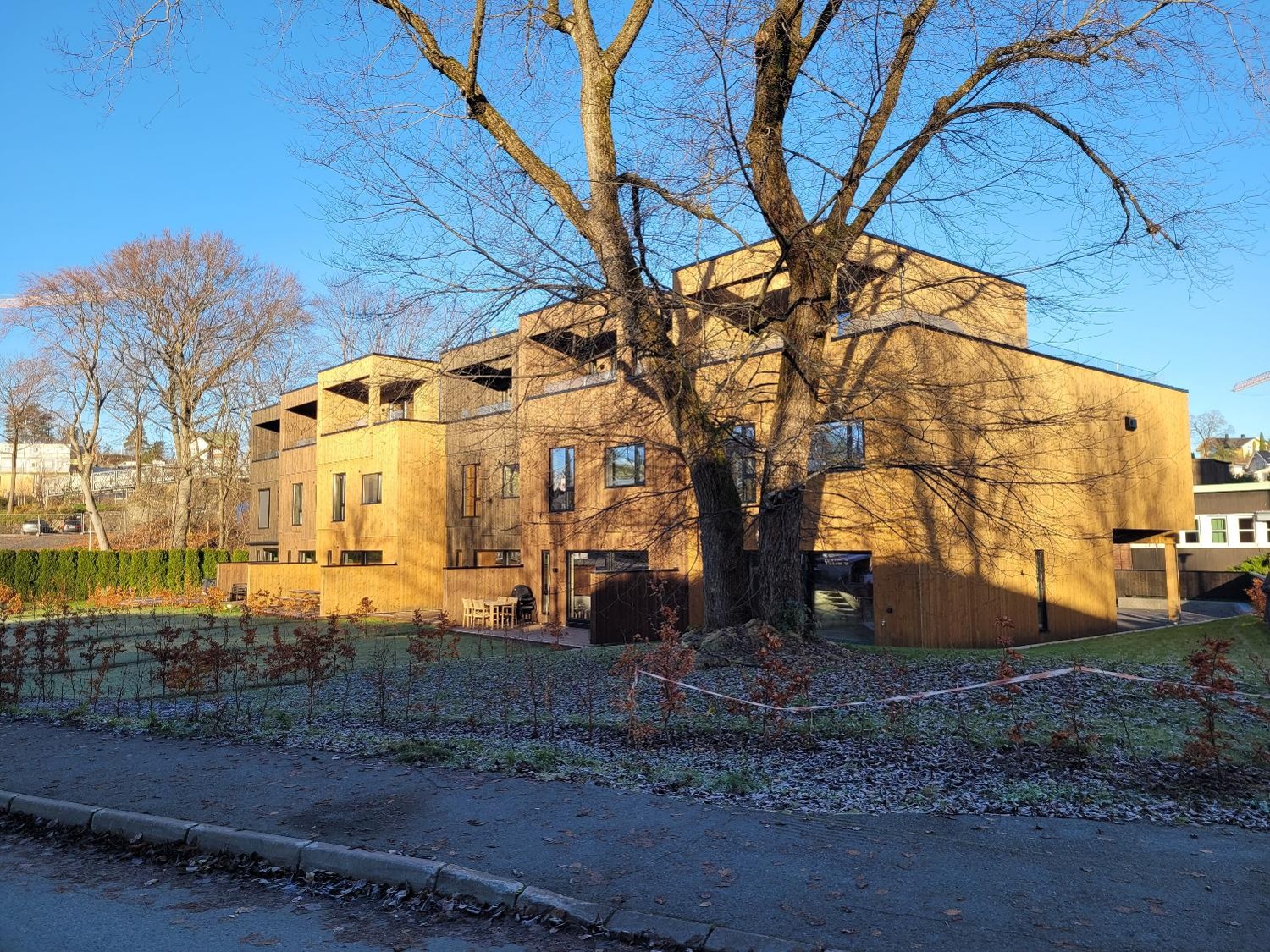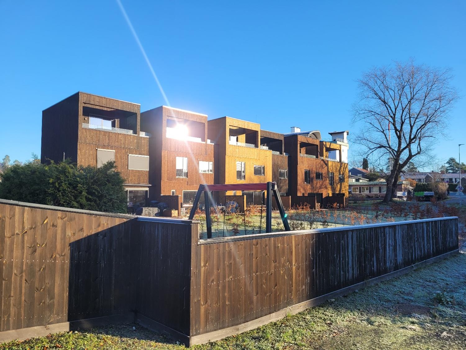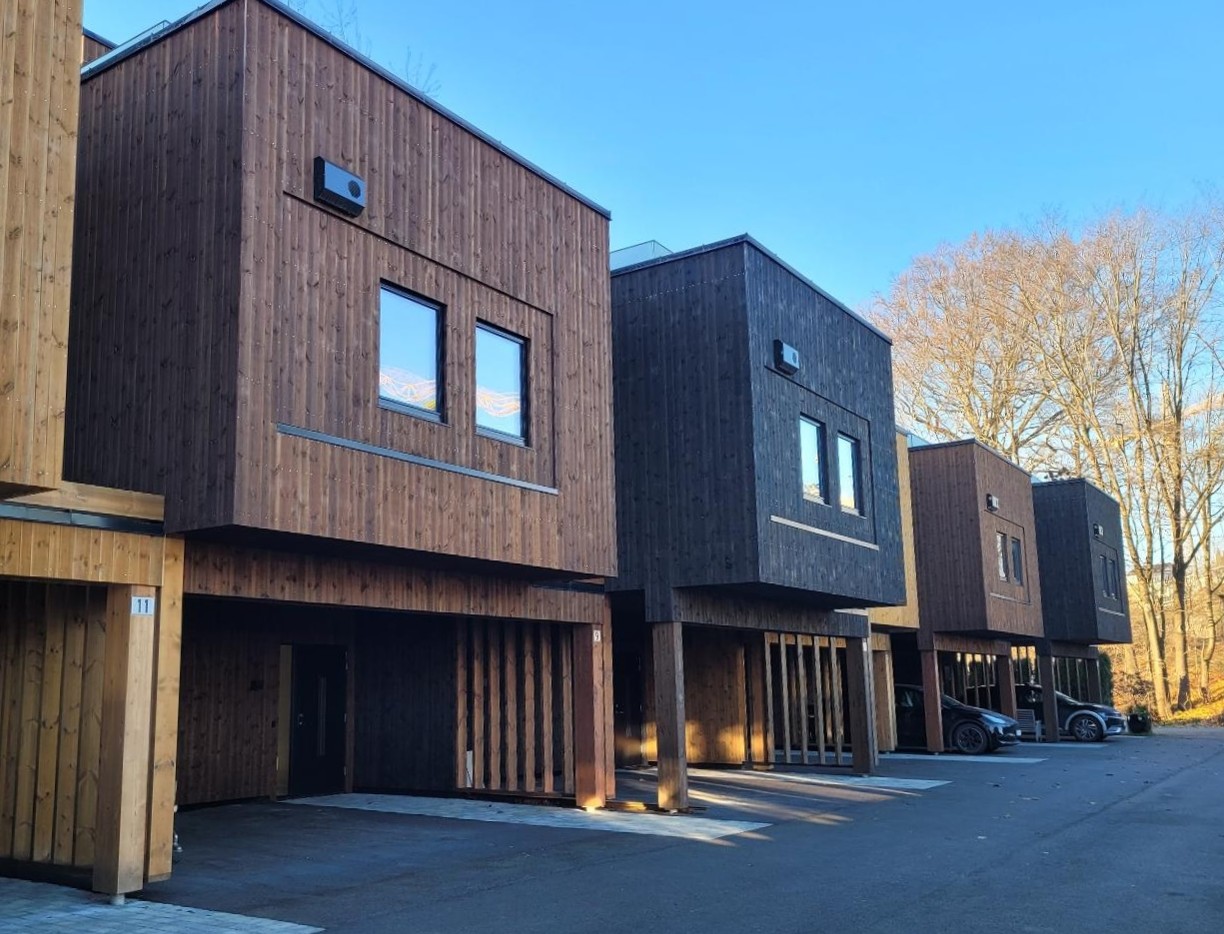 De nye rekkehusene i Bærum er ferdig bygget og har allerede fått sine første beboere.